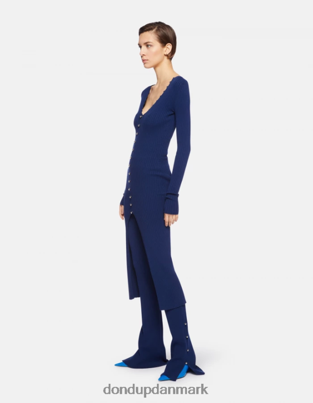 slim fit bootcut-bukser, høj elastisk talje, åbning forneden med små juvelknapper. ribbet stretch viskose. lavet i Italien.