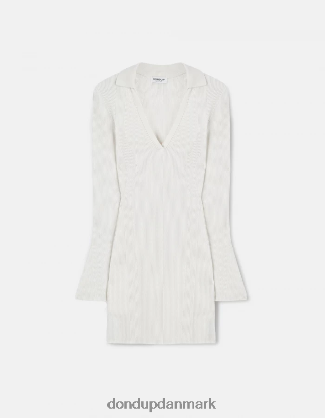 slim fit kort kjole med v-udskæring og lange ærmer. samspil af ribbede mønstre. lavet i Italien.
